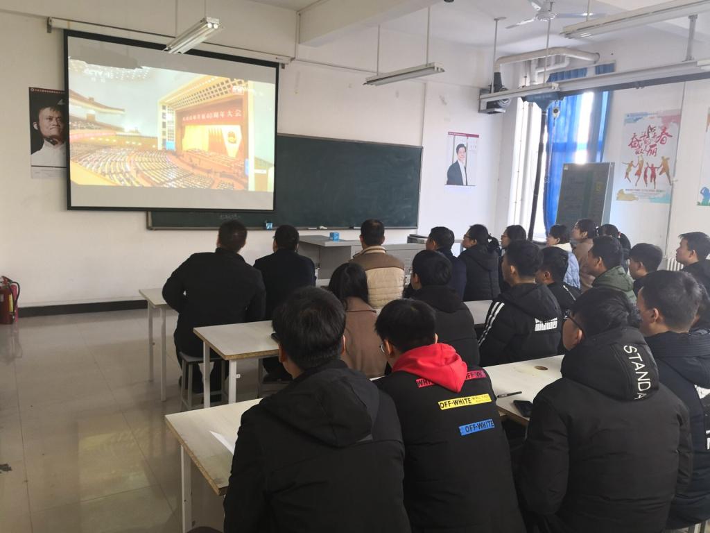 12月18日上午,best365官方网站登录入口组织师生在汽车实训楼201教室集体观看“庆祝改革开放40周年大会”现场直播,系党政领导班子和50余名师生共同观看了大会盛况。