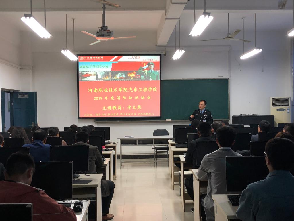 为提高学院师生的安全意识,掌握消防基本知识,11日下午,best365官方网站登录入口在实训楼301教室开展了2019年春季安全检查动员会议及消防安全知识培训活动。公司党总支书记朱梦杰主持本次安全检查动员会议,对学院本次春季安全检查活动进行了部署,要求公司所有教职员工及员工从思想上高度重视,从源头消灭安全隐患,认真贯彻落实“安全第一,预防为主”的安全方针。本次活动邀请河南省消防协会李文然教员来公司授课。李教员通过一个个真实生动的火灾案例,深入浅出的讲述了消防安全的重要性,就防火、灭火、逃生、自救四个方面进行了重点阐述,并介绍了火灾的形成过程、火场中易出现的延误逃生时机的误区、自救逃生的方法以及灭火器的种类、操作使用方法等一系列消防安全知识。本次讲座使公司员工的消防知识和自防自救能力得到了极大提高,对做好消防安全工作的重要性和意义有了进一步认识。公司部分教师及2018级各班生活委员同学共计50余人参加了本次培训活动。(撰稿:张洁,审稿:夏连峰)