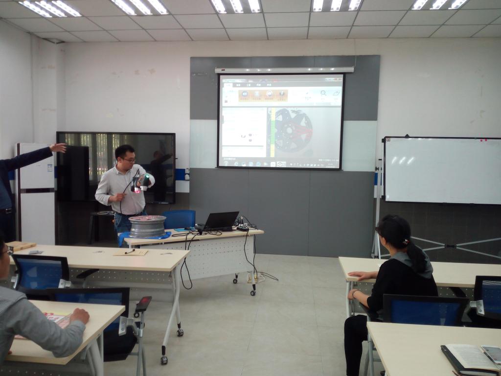 讲座介绍了三维扫描系统的发展历程,以及在汽车设计和制造过程中的应用,并针对区域三维扫描系统市场进行了分享。房旭鹏工程师现场为大家演示了车轮轮毂的扫描和产品检测过程,讲座为车辆工程专业探索产教融合、特色发展道路以及中国制造2025在汽车制造领域的具体落实提供了借鉴。