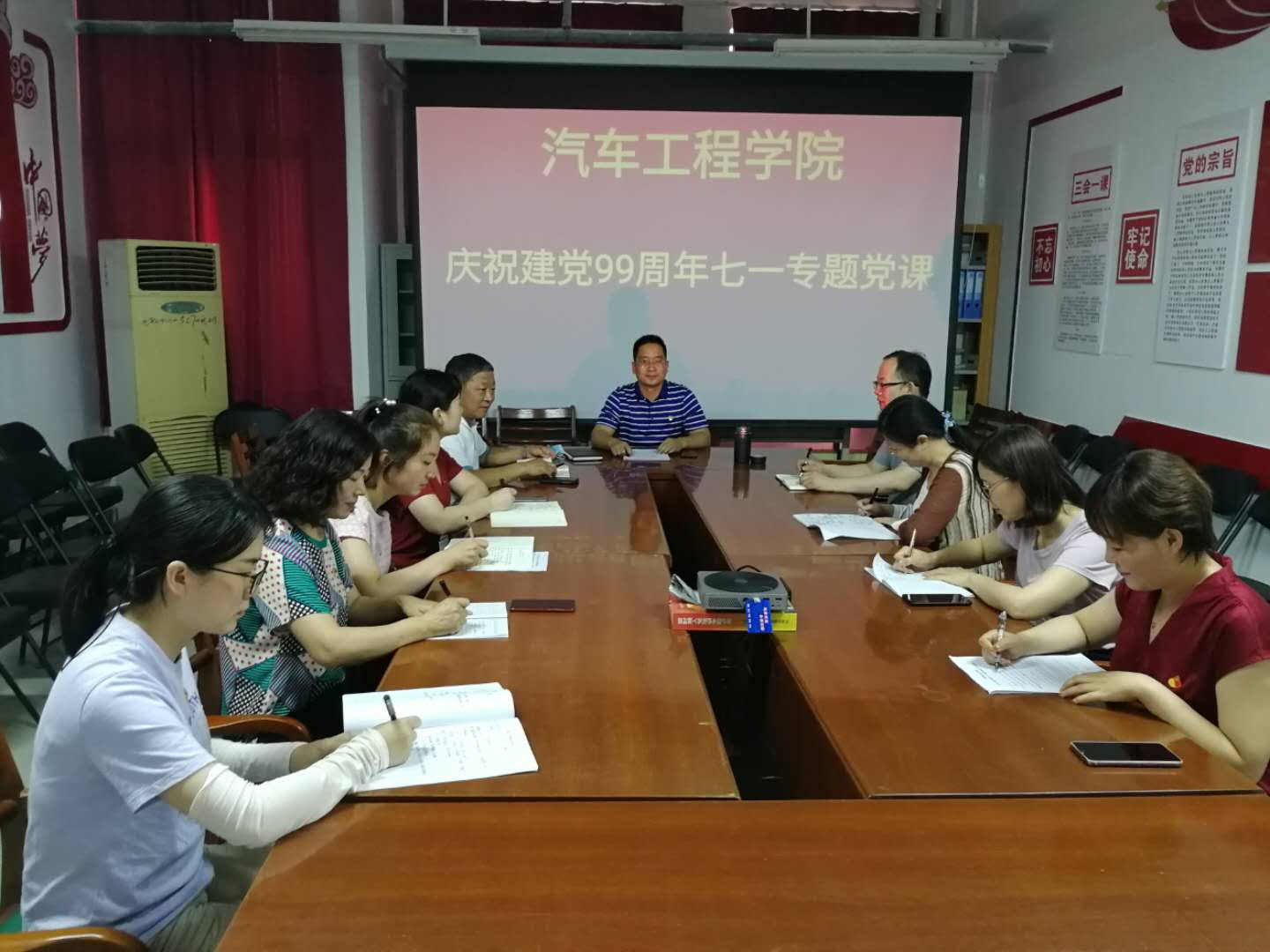 6月23日下午,best365官方网站登录入口员工党支部组织全体教师党员在汽车实训楼507党员活动室开展纪念“建党99周年”主题党课活动。汽车工程公司党总支副书记夏连峰主讲题为《牢记党的初心使命 勇担立德树人任务》专题党课。