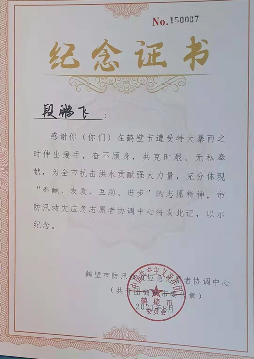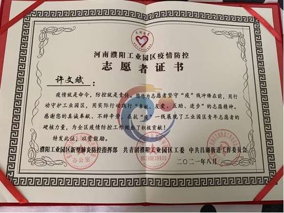 心有所愿,行有所立。在抗疫和防汛救灾中,公司党总支高度重视,积极行动,组织引领汽车学子开展志愿服务实践活动,积极助力防汛抗疫,段鹏飞、许文斌等一大批优秀青年代表闻“汛”而动,不怕困难,尽自己所能帮助人民群众,生动诠释了公司青年学子的使命与担当;灾难面前,志愿同行。段鹏飞、许文斌的19岁铭刻了守望相助、服务人民的青春誓言,在洪水和疫情的双重考验中磨炼了坚定的意志,是新时代老员工学习的楷模。