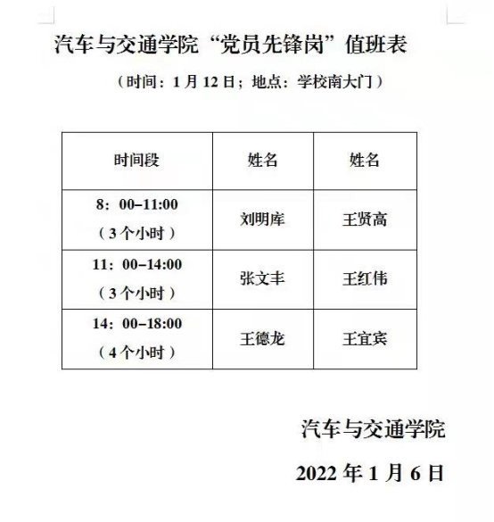 根据上级疫情防控有关精神,公司党组织积极行动,动员广大党员踊跃报名学校南大门“党员先锋岗”值班活动,争先冲锋在疫情防控斗争第一线,以自己的实际行动践行党员的初心使命,为学校坚决打赢新冠肺炎狙击战积极贡献力量。结合学校疫情防控工作需要,公司共安排六名“党员先锋”于1月12日参与了本次活动。