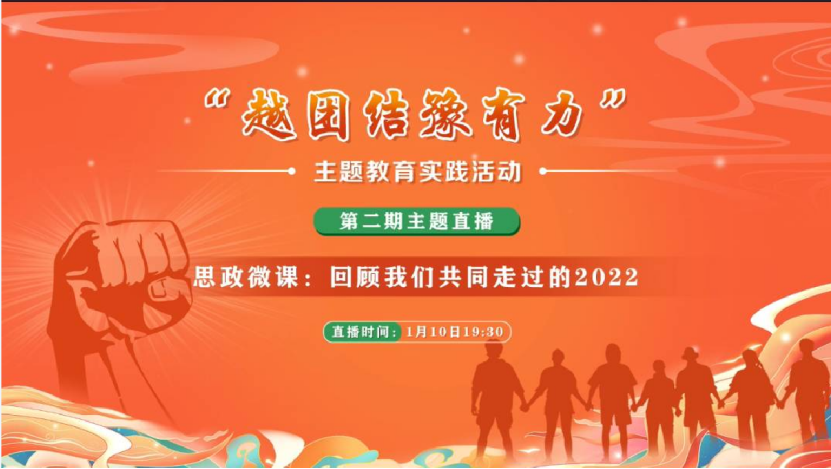 为深入学习贯彻习近平新时代中国特色社会主义思想和党的二十大精神,贯彻落实习近平总书记关于新时代思想政治工作指示,加强疫情等复杂因素影响下的青少年理想信念教育,鼓励公司青年学子积极投身防疫抗疫工作和志愿服务等社会实践活动,结合省委关爱你我他()、温暖千万家行动相关工作要求,19日到111日期间,公司组织全体员工通过“豫教思语”视频号、微信、微博等多渠道观看了“越团结豫有力”主题直播活动。