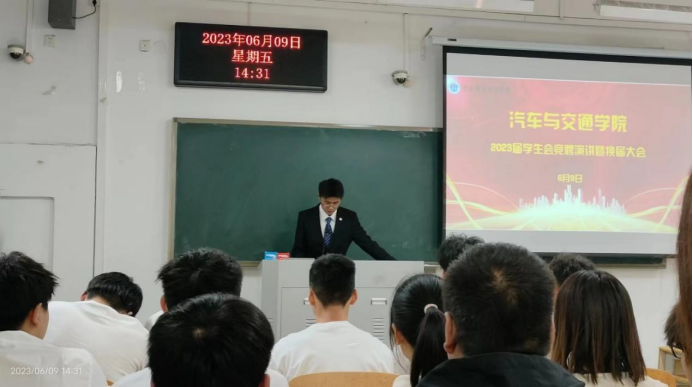 会议伊始,主持人宣读换届竞聘大会的流程,宣布竞聘开始。接着参加竞聘的员工依次进行竞聘演讲,随后上一届员工会工作人员代表张诗颖和张雨荷以及新一届员工会工作人员代表陈相发表演讲。最后,员工会指导老师田云青上台致辞,她在肯定上一届员工会工作成绩的同时对新一届员工会寄语:一要脚踏实地,扎扎实实做好自己的本职工作;二要志存高远,树立远大的理想和奋斗目标;三要正确处理好工作与学习的关系,为学院员工做好服务工作。