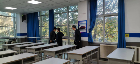 检查团队一行首先对实训室的电路和用电设备进行了详细的查看和检测,确保没有电线老化、插座松动或设备漏电等安全隐患。他们还对实训室的门窗进行了仔细检查,确认其完好无损、开关灵活,并具备防盗功能。