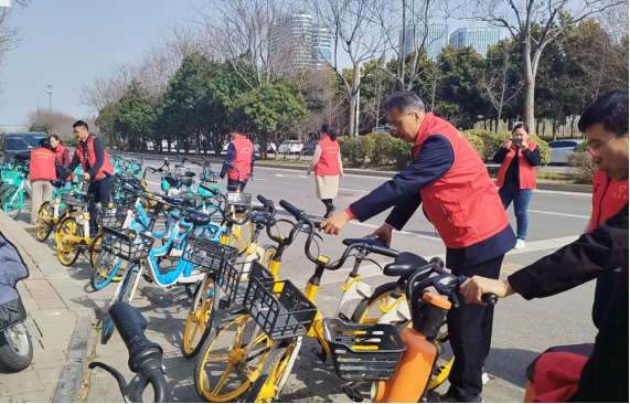 活动现场,全体党员整理了学校东南门及地铁12号线附近道路两侧无序停放的共享单车,按照“规范停放,摆放有序,朝向一致”的原则进行整理摆放,共享单车陆续回归原位。同时,全体党员还呼吁并劝导员工:看到随意乱停放的车辆能随手将它们摆放整齐,自觉维护、爱护身边的共享单车,做文明的骑行者、文明的停放者、文明的宣传者。